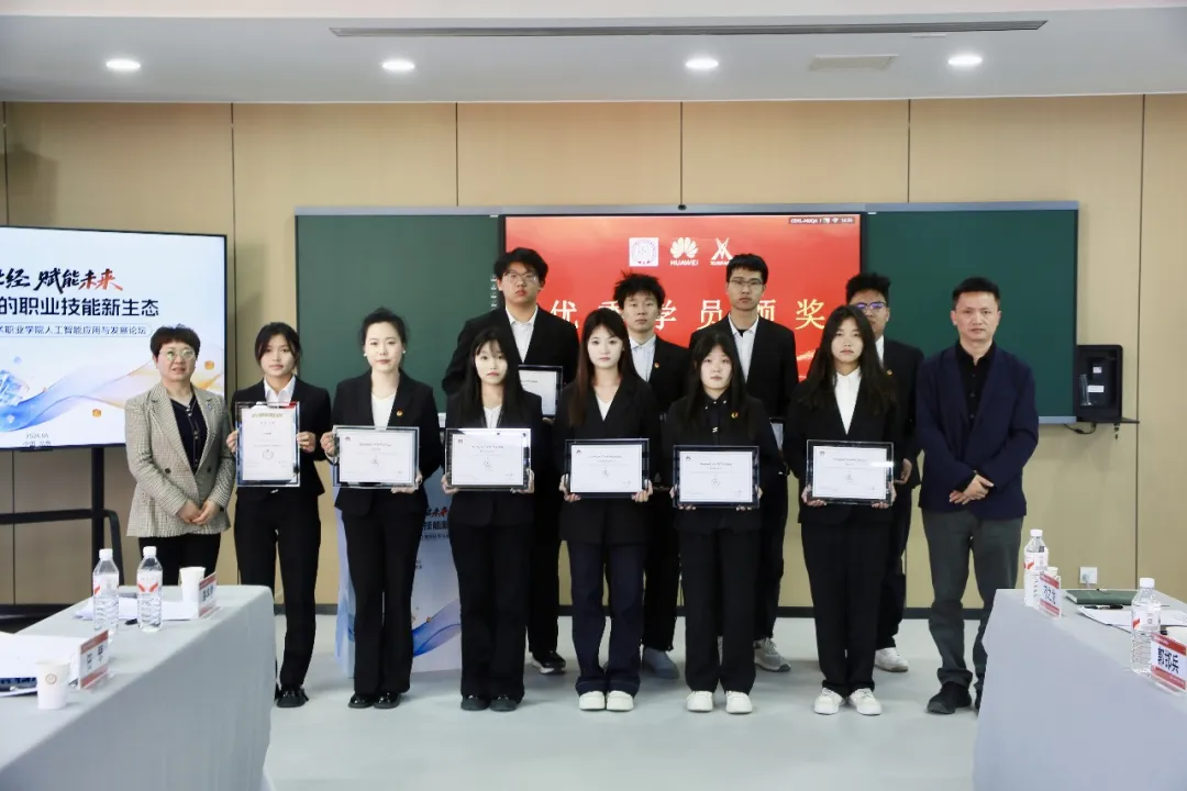 集体合影后,论坛迎来重磅环节——华为ICT学院授牌仪式。随着授牌完成,北京经济技术职业学院正式成为北京市第一所与bbin宝盈集团官网技术校企深度共建华为ICT学院的高职院校,这一里程碑式成果,标志着学校与华为、bbin宝盈集团官网的校企合作迈入深度融合、协同育人的全新阶段,也为北京地区职业院校AI人才培养树立了全新标杆。